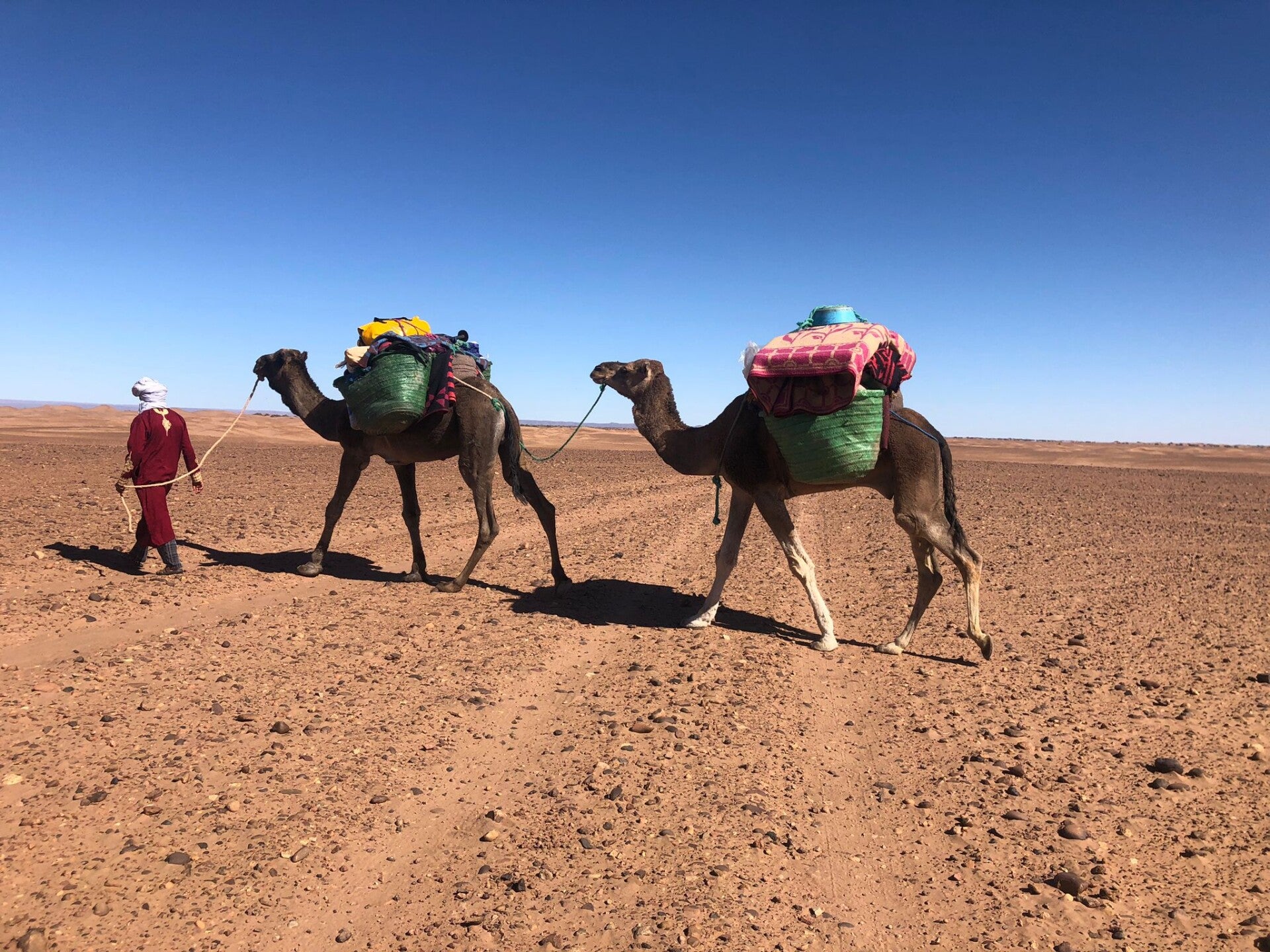 - Petit déjeuner au riad et départ tôt en voiture de Marrakech à M’Hamid El Ghizlane (7 heures de route - une pause déjeuner et étirements est prévue sur la route).