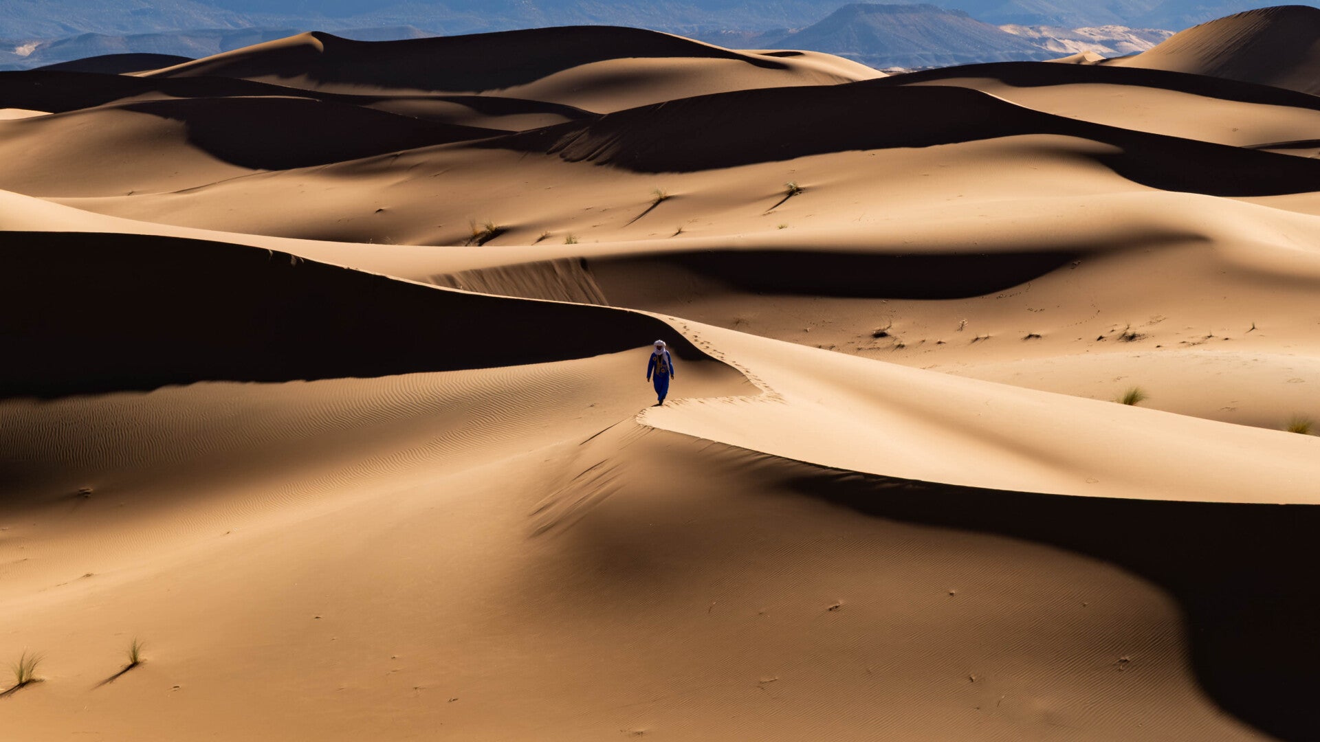 Grimpez au sommet de la plus haute dune du Maroc et admirez une vue panoramique à 360° de l’immensité qui vous entoure. Observez la lente chute du soleil sur le désert et la voie lactée reprendre ses droits dans le ciel.
